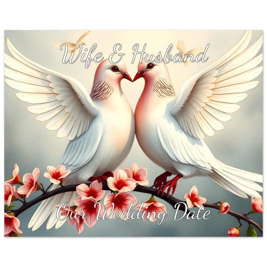 Personalized Wedding Date Wall hanging Aluminum Print - Doves