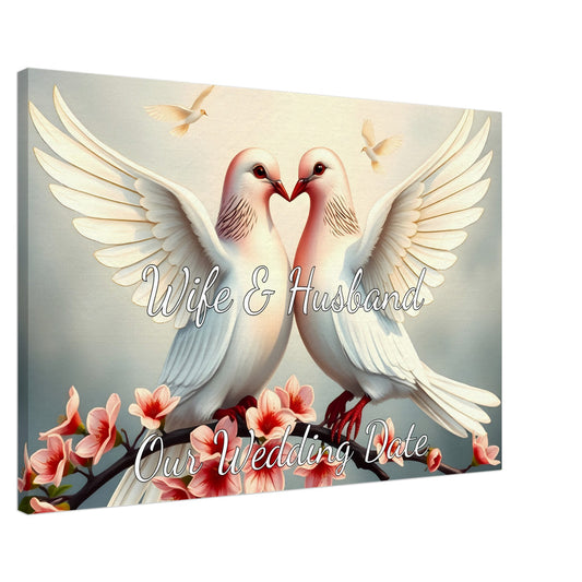 Personalized Wedding Date Wall hanging on Canvas - Doves