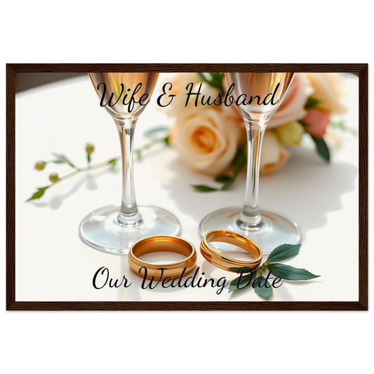 Personalized Wedding Date Wall hanging in wooden frame - Champagne