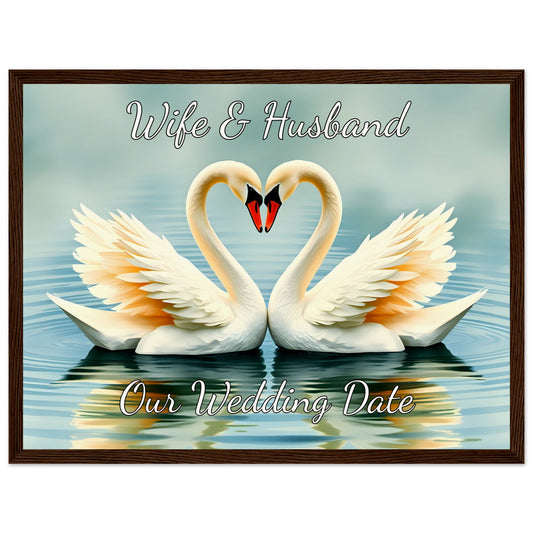 Personalized Wedding Date Wall hanging in wooden frame - Swans